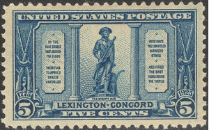 | #619 VF-XF MNH OG-HIGH GRADE GEM STAMP Fabulous VF-XF MNH OG Scott #619 5-center from the Lexington-Concord commemorative Series. Get this one in your collection today