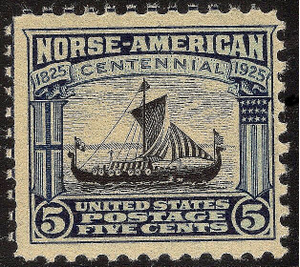 | #621 F-VF MNH OG-5c Norse American Series Viking Ship-Great looking stamp Fabulous F-VF MNH OG Scott #620-center from the Norse-American commemorative Series showing a Viking ship. Very fresh looking stamp with great gum. Broken from a Center line block withPlate Guide line at top and left. Get this one in your collection today