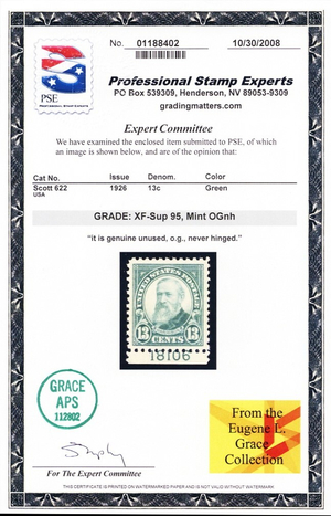 622, Mint NH 13¢ XF/Superb - PSE Graded 95 Certificate * Stuart Katz