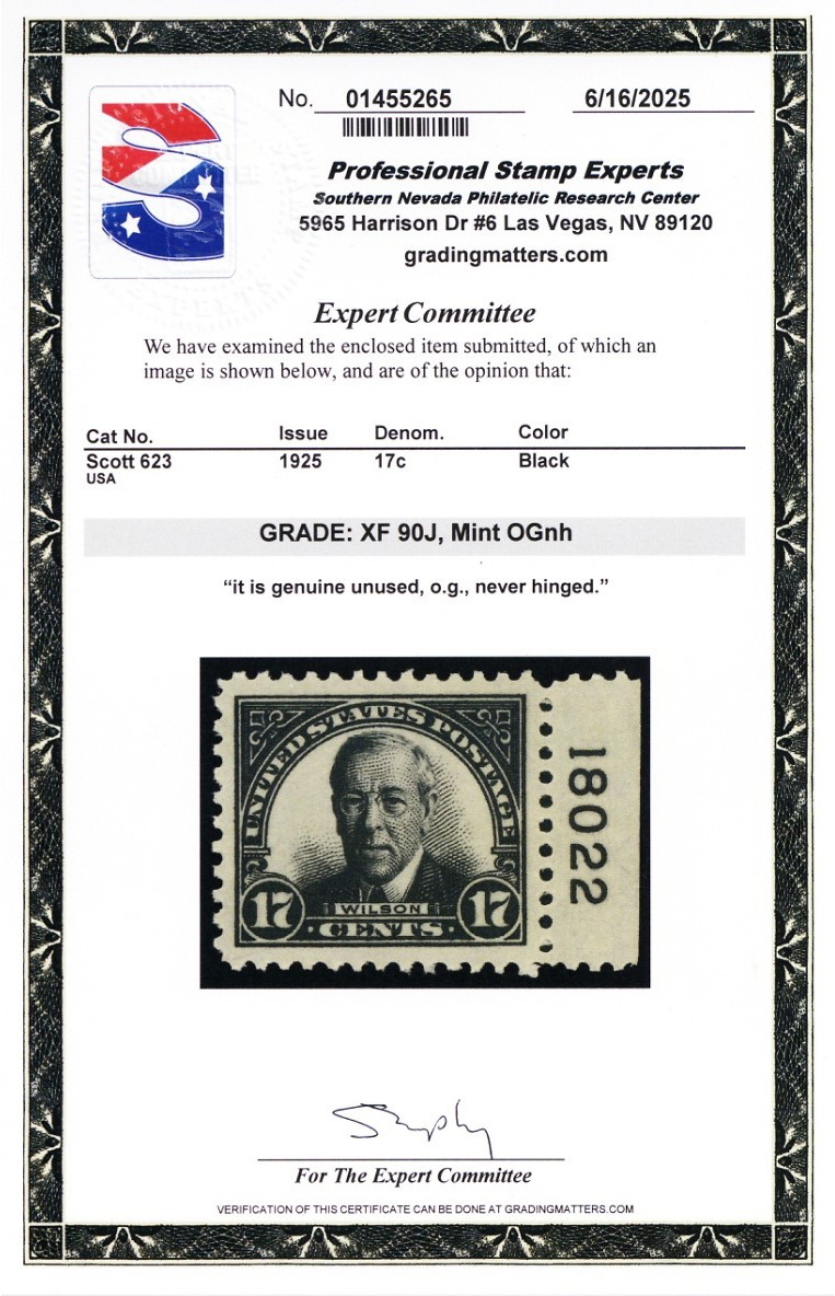 623, Mint XF NH 17¢ - HUGE JUMBO - Graded 90J PSE Certificate - Stuart Katz