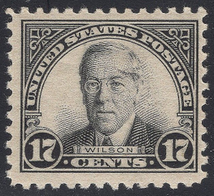 Scott #623 VF-XF MNH OG 17-cent Woodrow Wilson Flat plate press issue. This is a beauty of a stamp. Fresh with centered margins and nice deep color for this issue