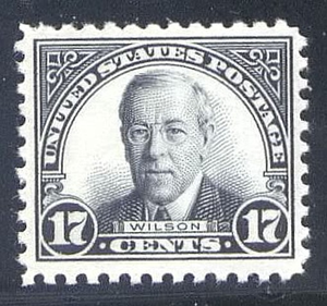 Scott #623 VF-XF MNH OG 17-cent Woodrow Wilson Flat plate press issue. This is a beauty of a stamp. Fresh with centered margins and nice deep color for this issue