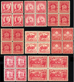 629//690, Mint VF NH 2¢ Reds Blocks of Four * Stuart Katz