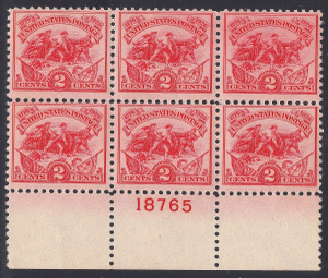 #629 VF MNH-OG-2c BATTLE OF WHITE PLAINS WIDE BOTTOM PLATE BLOCK OF 6