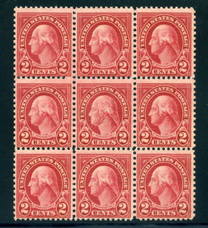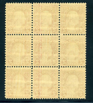 634 Long Ear Variety in normal 2¢ block of nine, Mint NH, Scott $175
