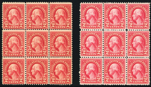 634 Var, Mint NH 2¢ - Long Ear In Block of Nine W/Normal - Stuart Katz