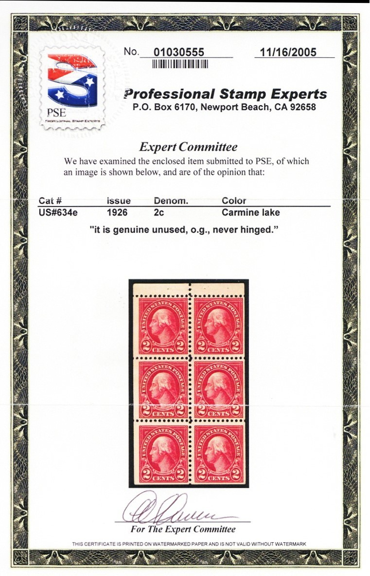 634E, Mint NH 2¢ Carmine Lake Shade - PSE Certificate SCV $750 * Stuart Katz