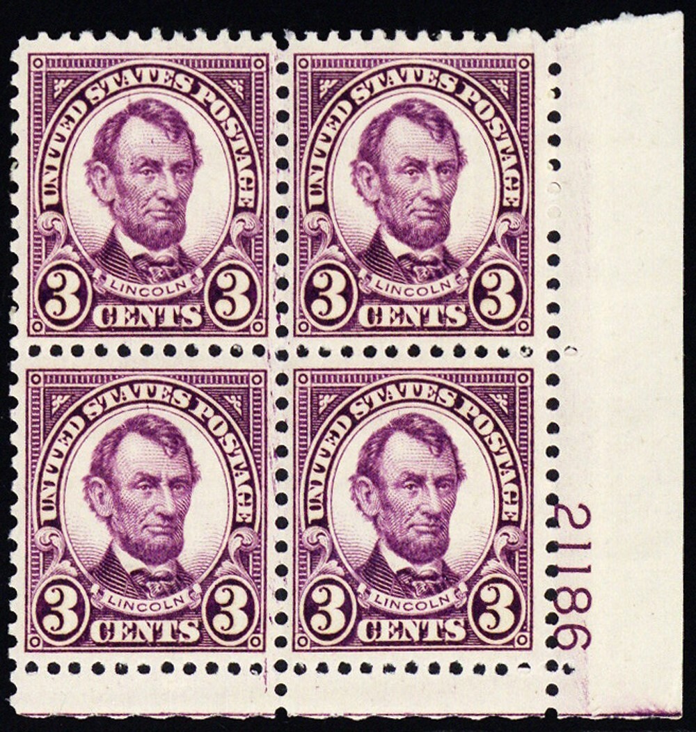 635a Var, "Gripper Cracks" Mint VF NH 3¢ Lincoln Plate Block * Stuart Katz