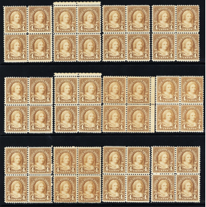 636, Mint NH 4¢ - Twelve Blocks of Four SCV $144.00 - Stuart Katz