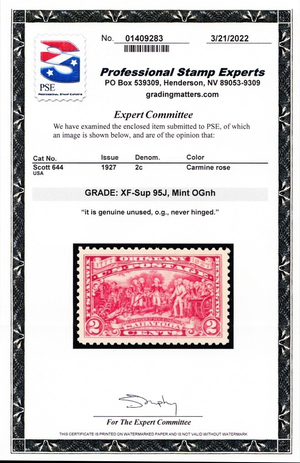 644, Mint XF/Superb NH 2¢ With Graded 95J PSE Certificate - Stuart Katz
