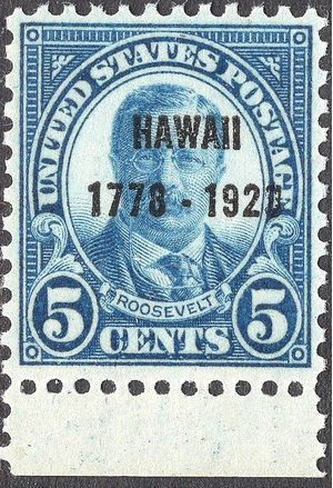 Scott #648 Superb MNH OG 5-cent Hawaii Overprint with nice margins and clearly inked overprint. Selvage attached at bottom. Tough to find the Hawaiian overprints with margins like this. Get this one into your collection now.
