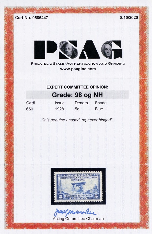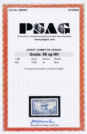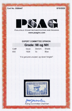 650, Mint Superb NH 5¢ With Graded 98 PSAG Certificate - Stuart Katz