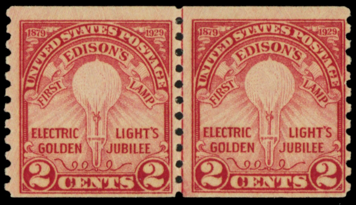 656, Mint NH 2¢ Edison Joint Line Coil Pair - Stuart Katz