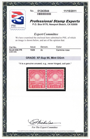 656, Mint NH XF/Superb 2¢ Coil Pair - PSE Graded 95 Certificate - Stuart Katz
