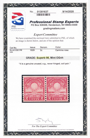 656, Mint Superb NH 2¢ Coil Pair - With Graded 98 PSE Certificate - Stuart Katz