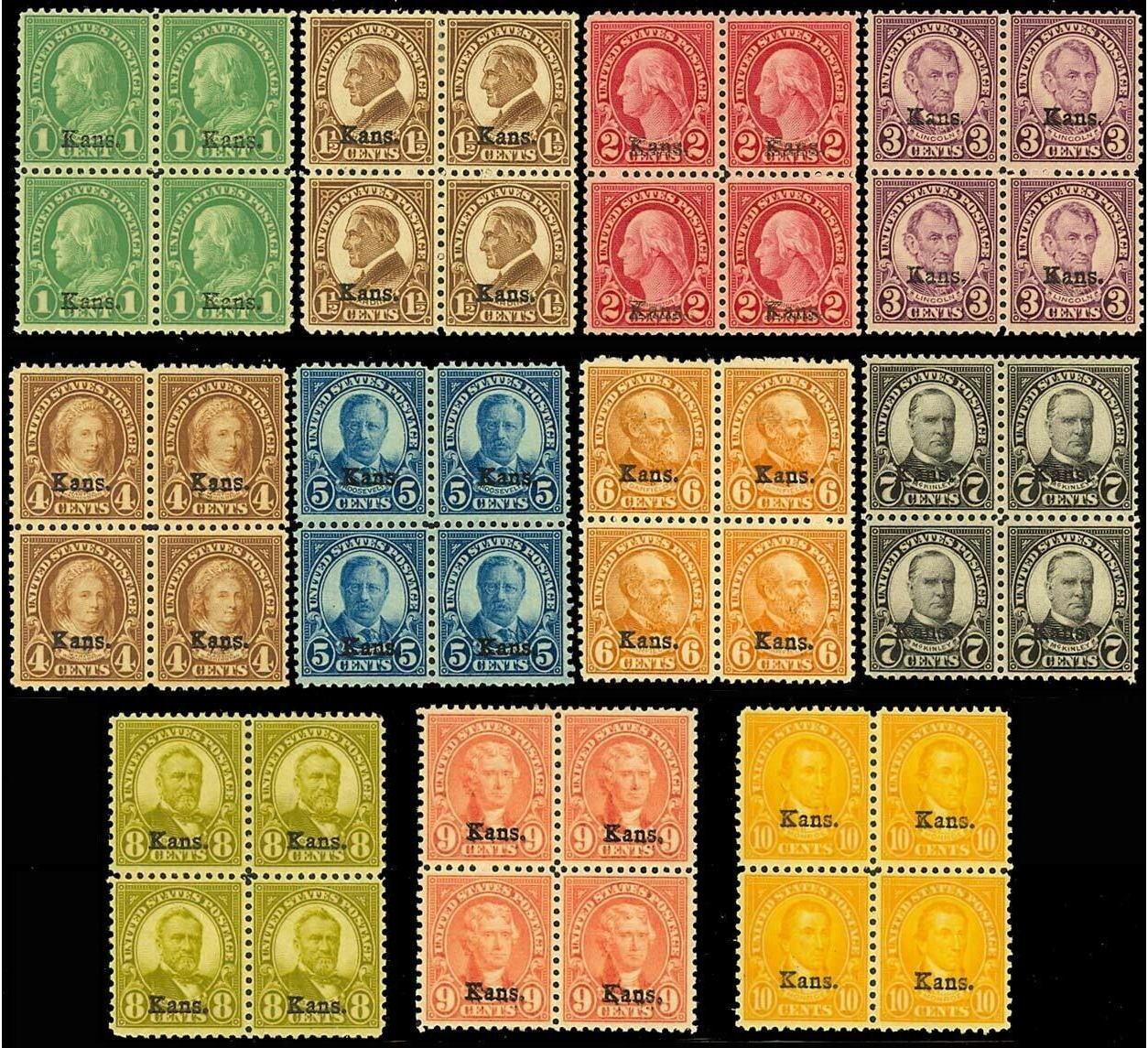 658-68, COMPLETE SET OF Kans BLOCKS - F-VF+ OG NH/LH/H FRESH! Cat $1,414.00