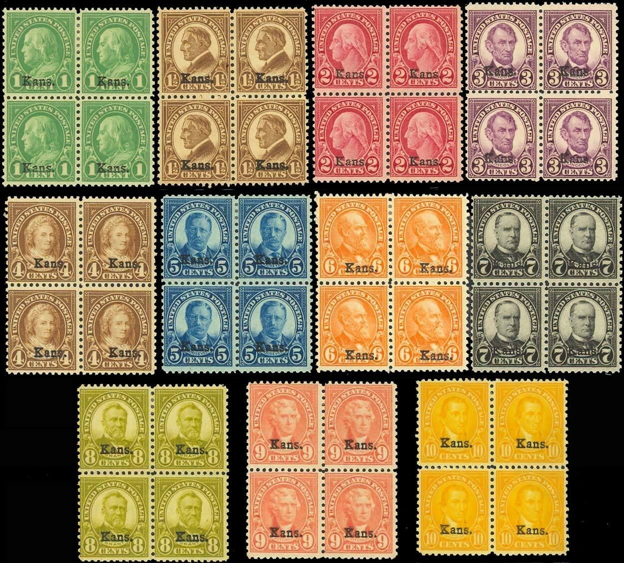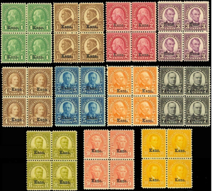658-68, COMPLETE SET OF Kans BLOCKS OF FOUR - F-VF+ NH/LH Cat $1,291.00