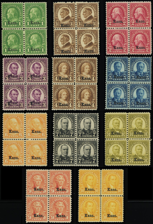 658-68, Mint Set of Kansas Blocks of Four - SCV $1510.75 - Stuart Katz