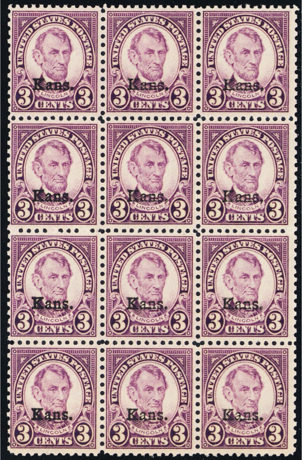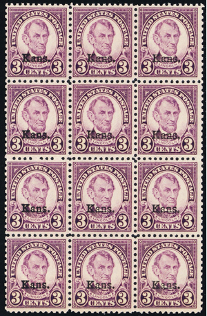 661, Mint NH 3¢ "Kans" Block of 12 Stamps - SCV $420 - Stuart Katz