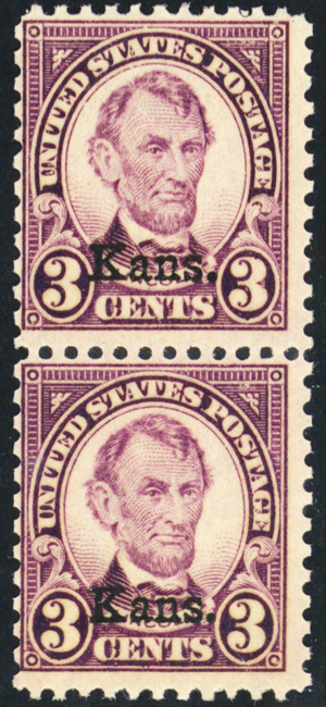 661, Mint NH 3¢ Pair Kansas Overprint CV $70.00 - Stuart Katz