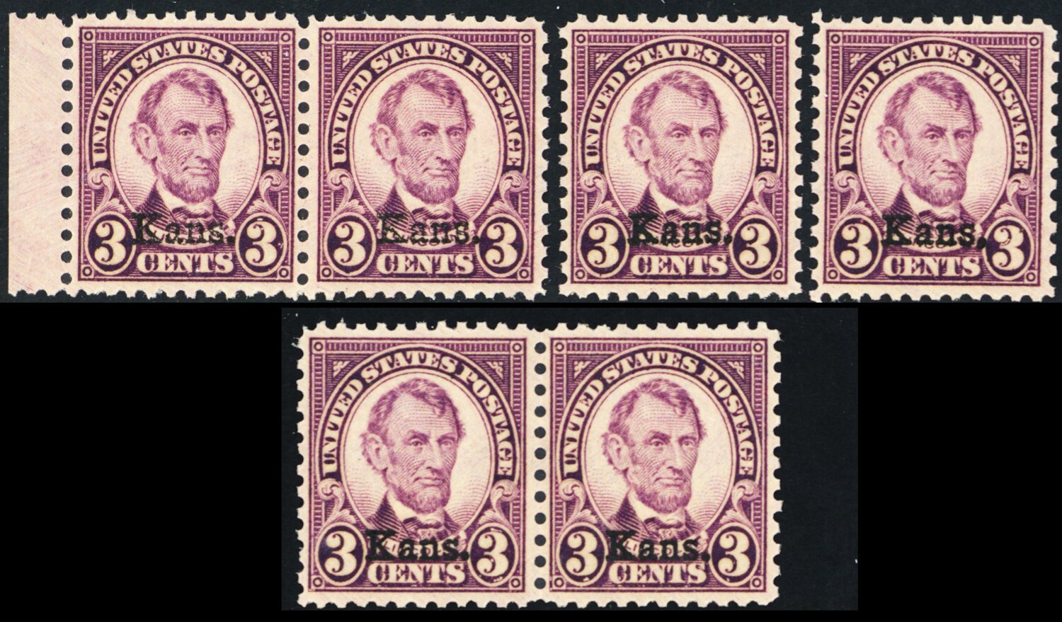 661, Mint VF NH 3¢ SIX COPIES! Kansas Overprint CV $210.00 - Stuart Katz