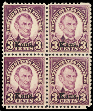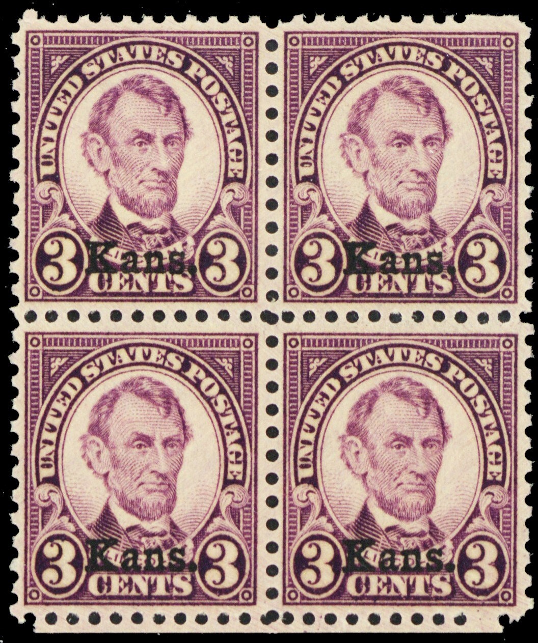 661, Mint XF NH 3¢ Kansas Overprint Block of Four! * Stuart Katz