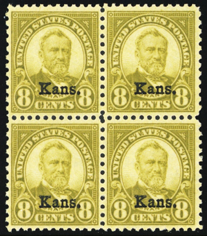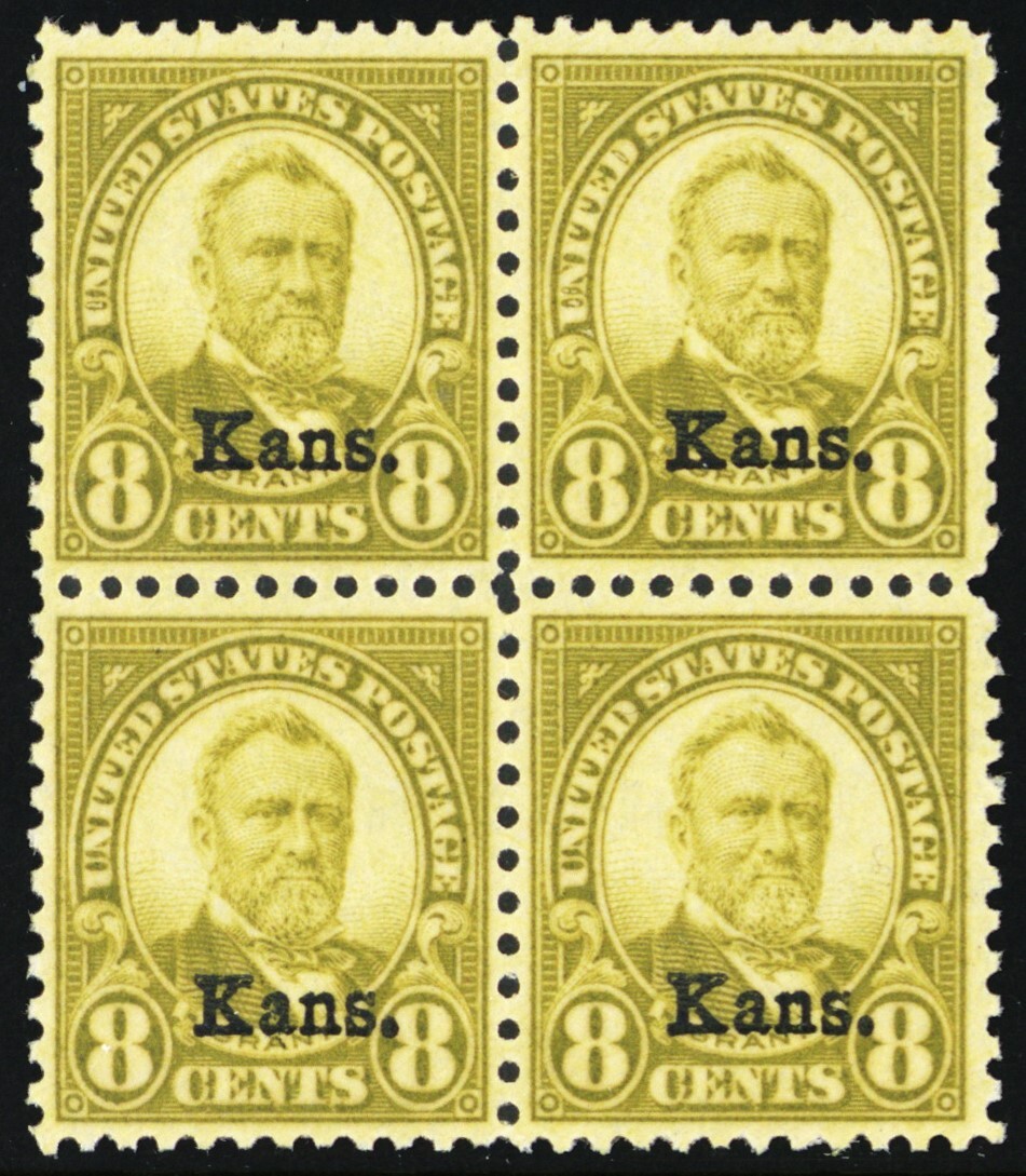 666, Mint VF NH 8¢ KANSAS Block of Four Stamps CV $580 - Stuart Katz