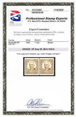686, Mint NH XF/Superb Coil Pair - PSE Graded 95 Certificate ** Stuart Katz