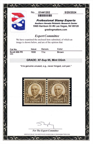 686, Mint XF/Superb NH Coil Pair - Graded 95 PSE Certificate - Stuart Katz