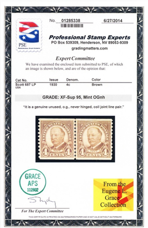 687, Mint NH 4¢ XF/Superb Coil Line Pair - PSE Graded 95 * Stuart Katz