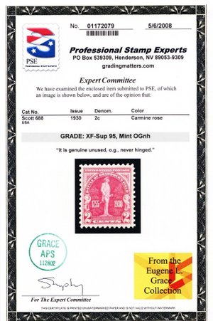 Due to the high cost of obtaining certificates we will only refund the cost of the stamp and not the cost of the certificate for stamps that sell for less than $250 that come back with a negative certificate. Stamps that sell for above $250 will receive a full refund for both the price of the stamp and cost of the certificate if it should come back not as described. For U.S. stamps only certificates from either APS, PSE or from the Philatelic Foundation are accepted, however "graded" certificates or "encased" items are not accepted.