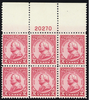689, Mint VF NH TOP Plate Block of 6 Stamps SCV $25 - Stuart Katz