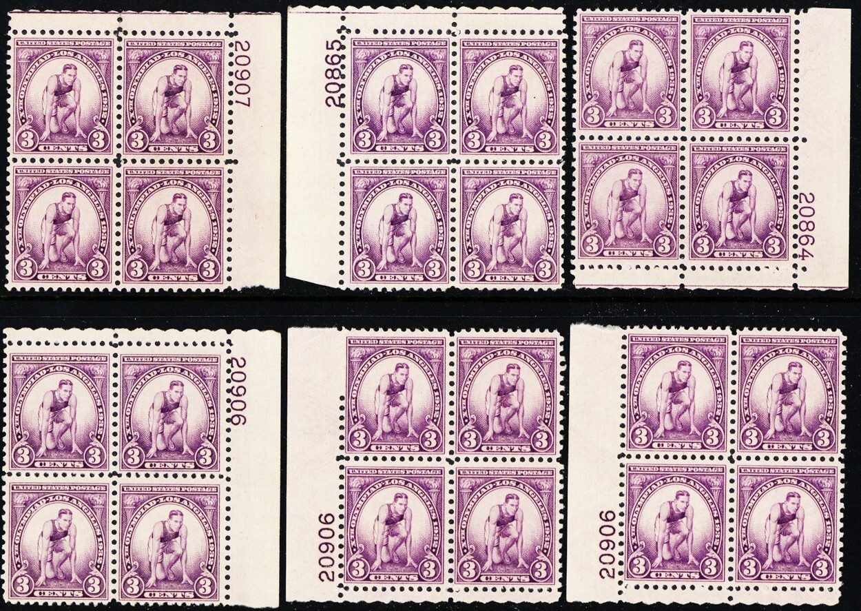 718, Mint VF NH 3¢ SIX Plate Blocks CV $102.00 - Stuart Katz