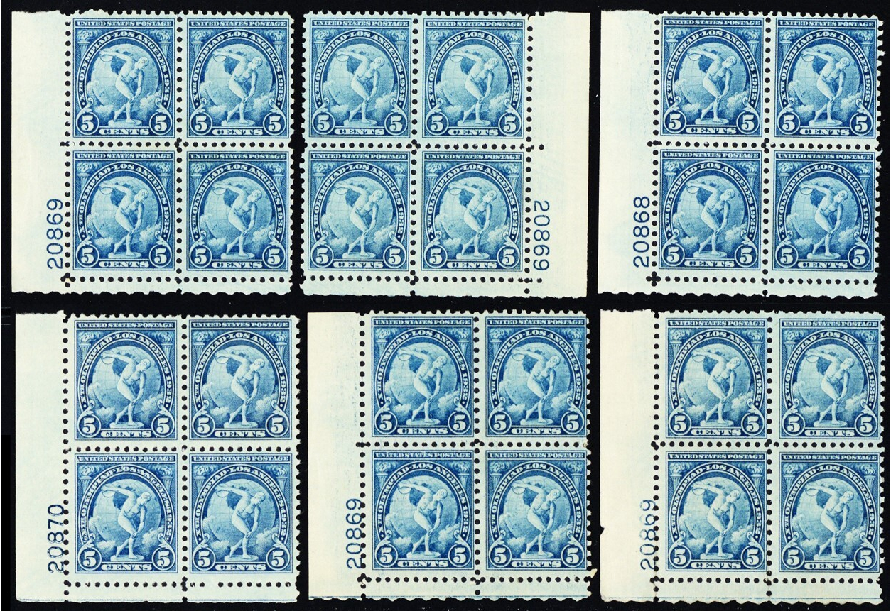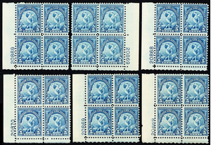 719, Mint F-VF NH 5¢ SIX Plate Blocks CV $150.00 - Stuart Katz
