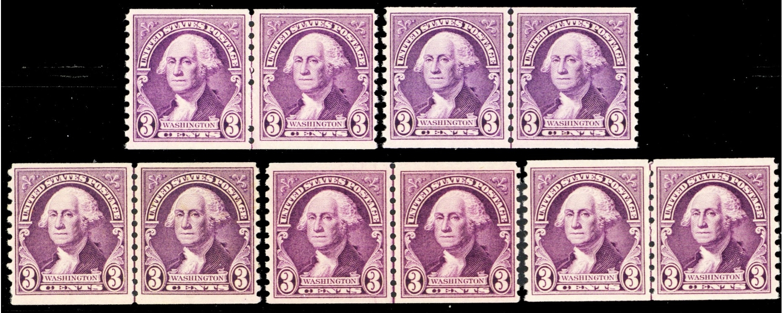 721, Mint VF NH 3¢ FIVE Coil Line Pairs CV $65.00 * Stuart Katz