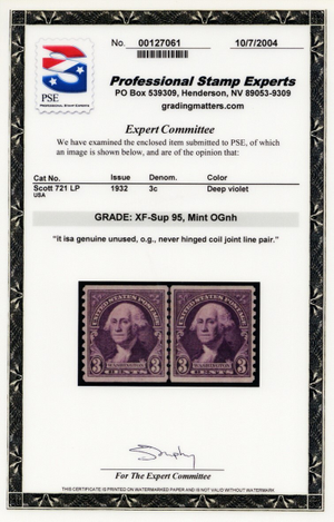 721, Mint XF/Sup NH Coil Line Pair With Graded 95 PSE Certificate - Stuart Katz