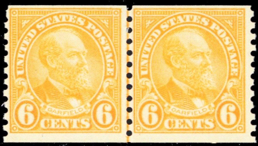 723, Mint NH 6¢ Garfield Coil Line Pair Cat $82.50 - Stuart Katz