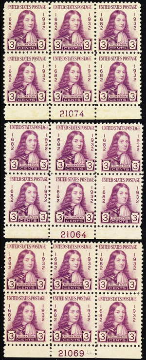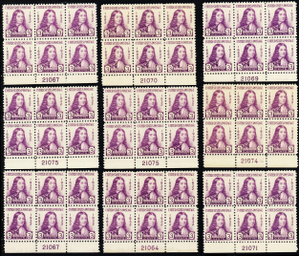 724, Mint F-VF NH 3¢ FIFTEEN Plate Blocks CV $187.50 - Stuart Katz