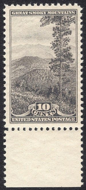 | #749 SUPERB MNH OG-10c Smoky Mountains Park-HIGH GRADE GEM STAMP with selvage attached Fabulous XF MNH OG Scott #749 10-center with great margins and attached selvage from the 1934 National Parks commemorative Series. Get this one in your collection today