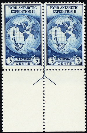 753, Unused NGAI 3¢ Byrd Vertical Line Pair -- Stuart Katz