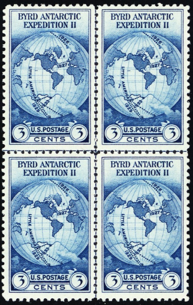 753, Unused VF 3¢ Byrd Center Line Block Of Four Stamps -- Stuart Katz