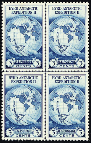 753, Unused XF 3¢ Byrd Center Line Block Of Four Stamps -- Stuart Katz