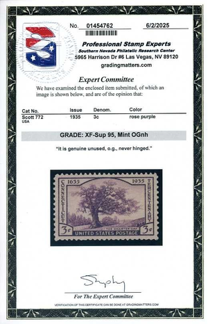 772, Connecticut Tercentenary, Mint NH, PSE Graded XF-Sup 95 Certificate, SMQ$40