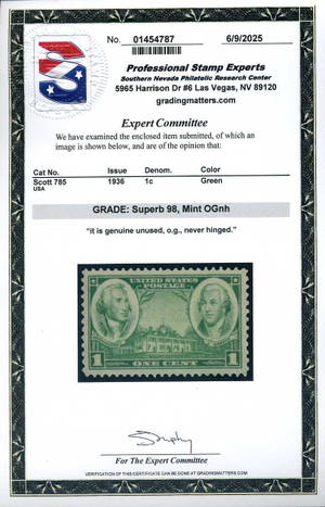785, 1¢ Washington-Greene, Mint NH, PSE Graded Superb 98 Certificate, SMQ $105