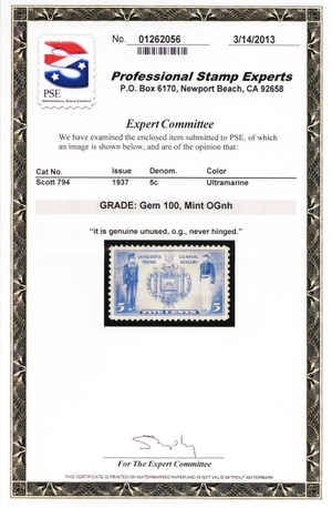No refunds will be made after 60 days after the sale date unless extra time is granted. Due to the high cost of obtaining certificates we will only refund the cost of the stamp and not the cost of the certificate. For U.S. stamps only certificates from either APS, PSE or from the Philatelic Foundation are accepted, however "graded" certificates or "encased" items are not accepted.
