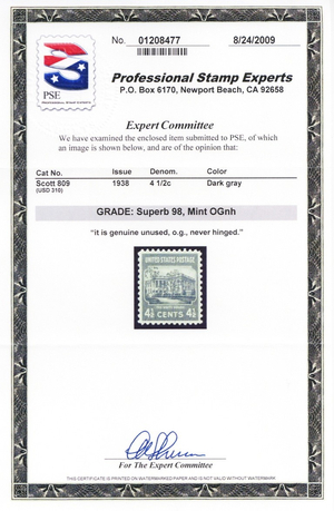 809, Mint Superb NH With PSE Graded 98 Certificate * Stuart Katz