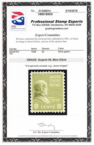 813, Mint NH 8¢ Superb - With Graded 98 PSE Certificate - Stuart Katz