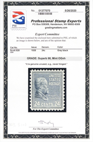 828, Mint 24¢ Superb - PSE Graded 98 Certificate - Stuart Katz