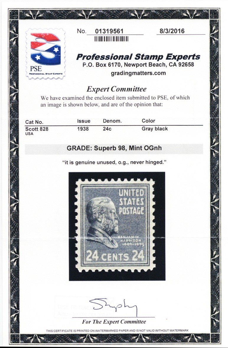 828, Mint XF/Superb NH 24¢ - With PSE Graded 98 Certificate * Stuart Katz