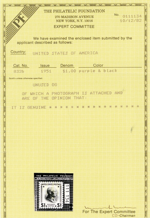 No refunds will be made after 60 days after the sale date unless extra time is granted. Due to the high cost of obtaining certificates we will only refund the cost of the stamp and not the cost of the certificate. For U.S. stamps only certificates from either APS, PSE or from the Philatelic Foundation are accepted, however "graded" certificates or "encased" items are not accepted.